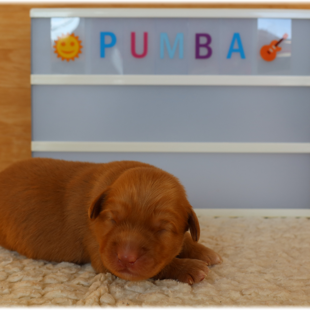 Passend zum Namen der Mutter erhielten die 4 Welpen von den Kindern Namen aus "König der Löwen" - daher wurden die rotfelligen Zwerge Simba, Pumba, Scar und Zira gerufen.